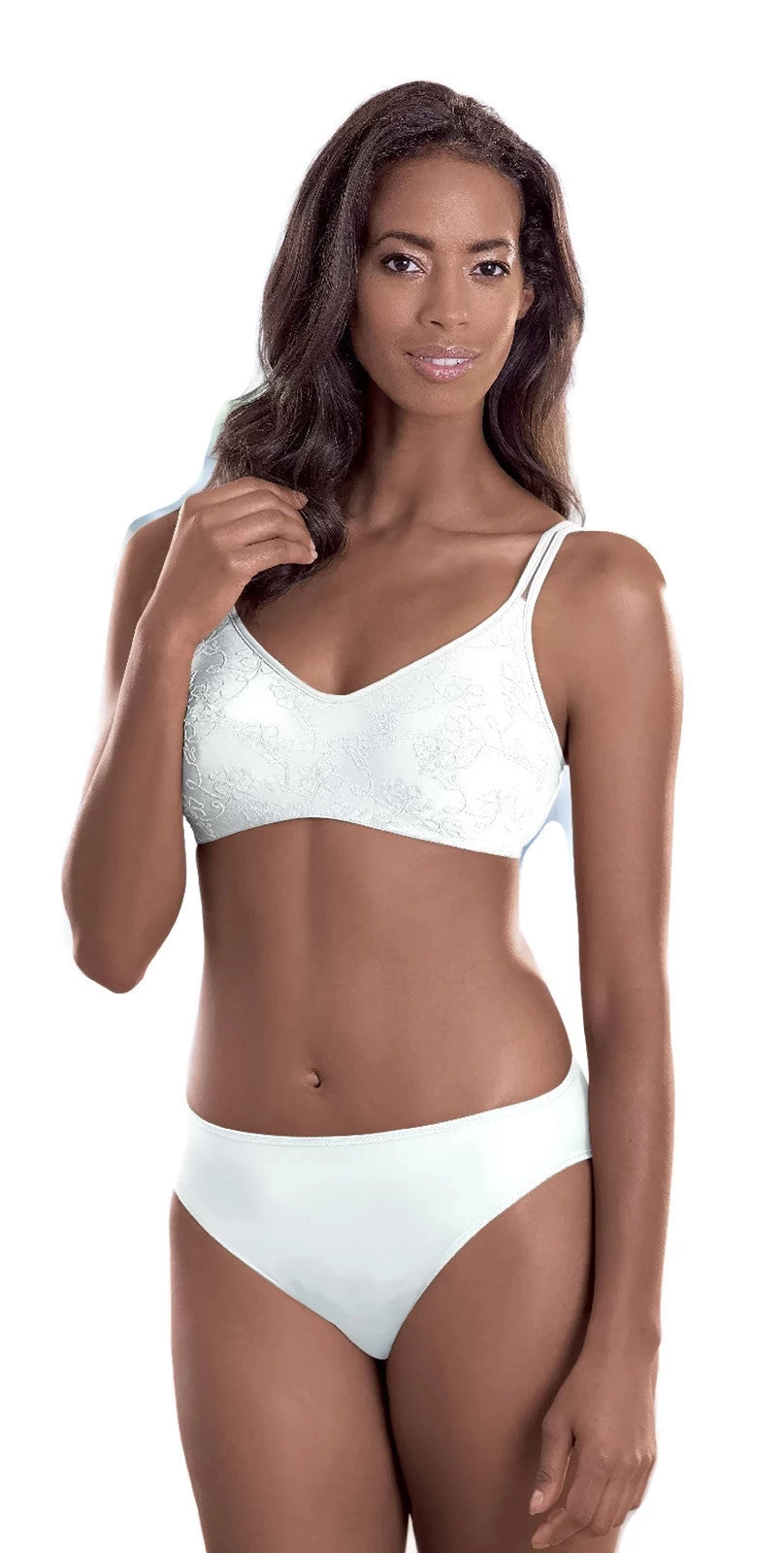 - Beautiful embroidered detail on soft cup bra.