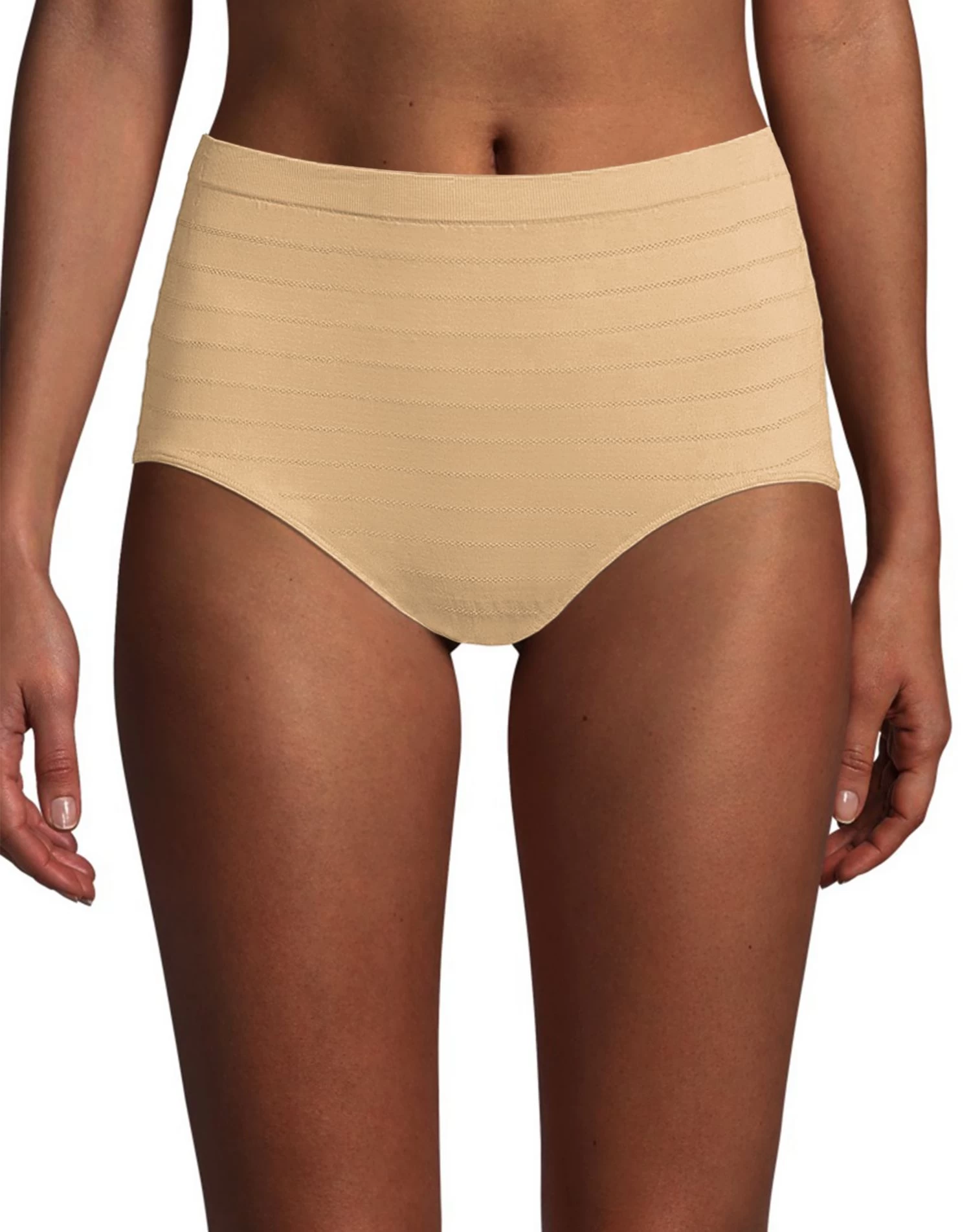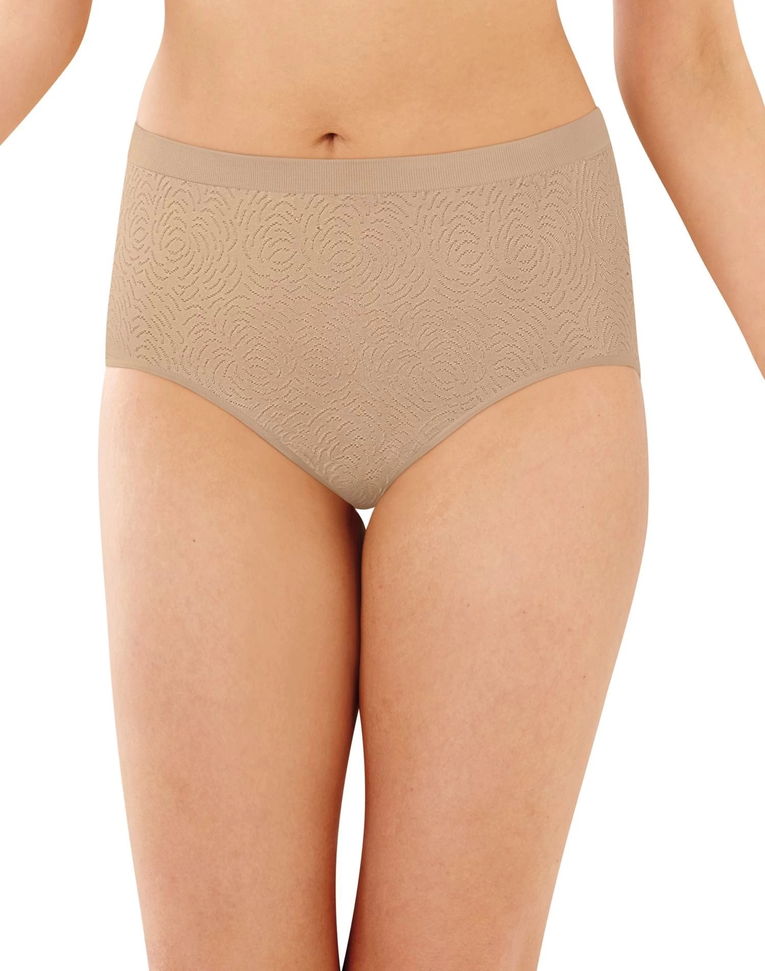 - Narrow leg bands and knit-in waistband help minimize panty lines.