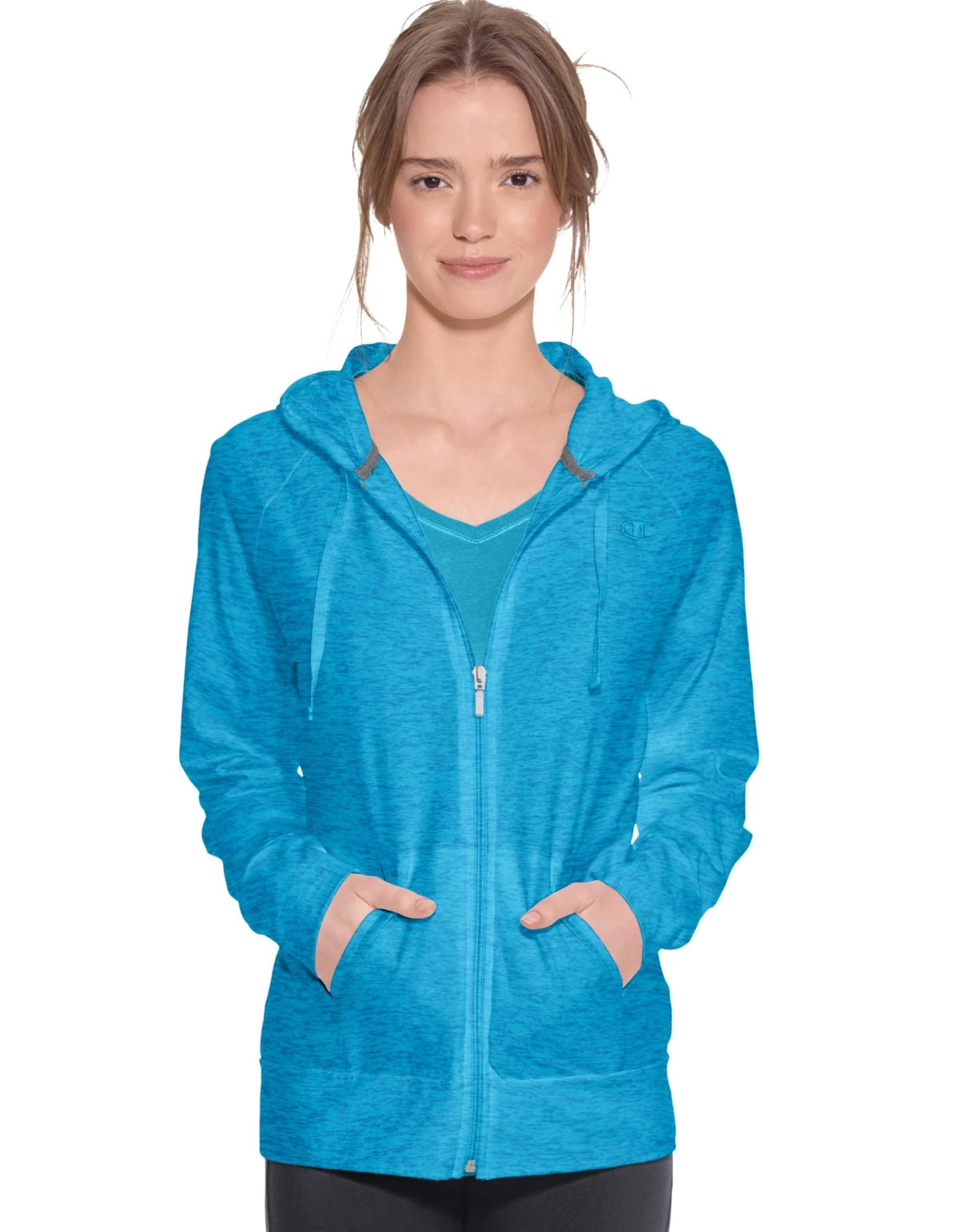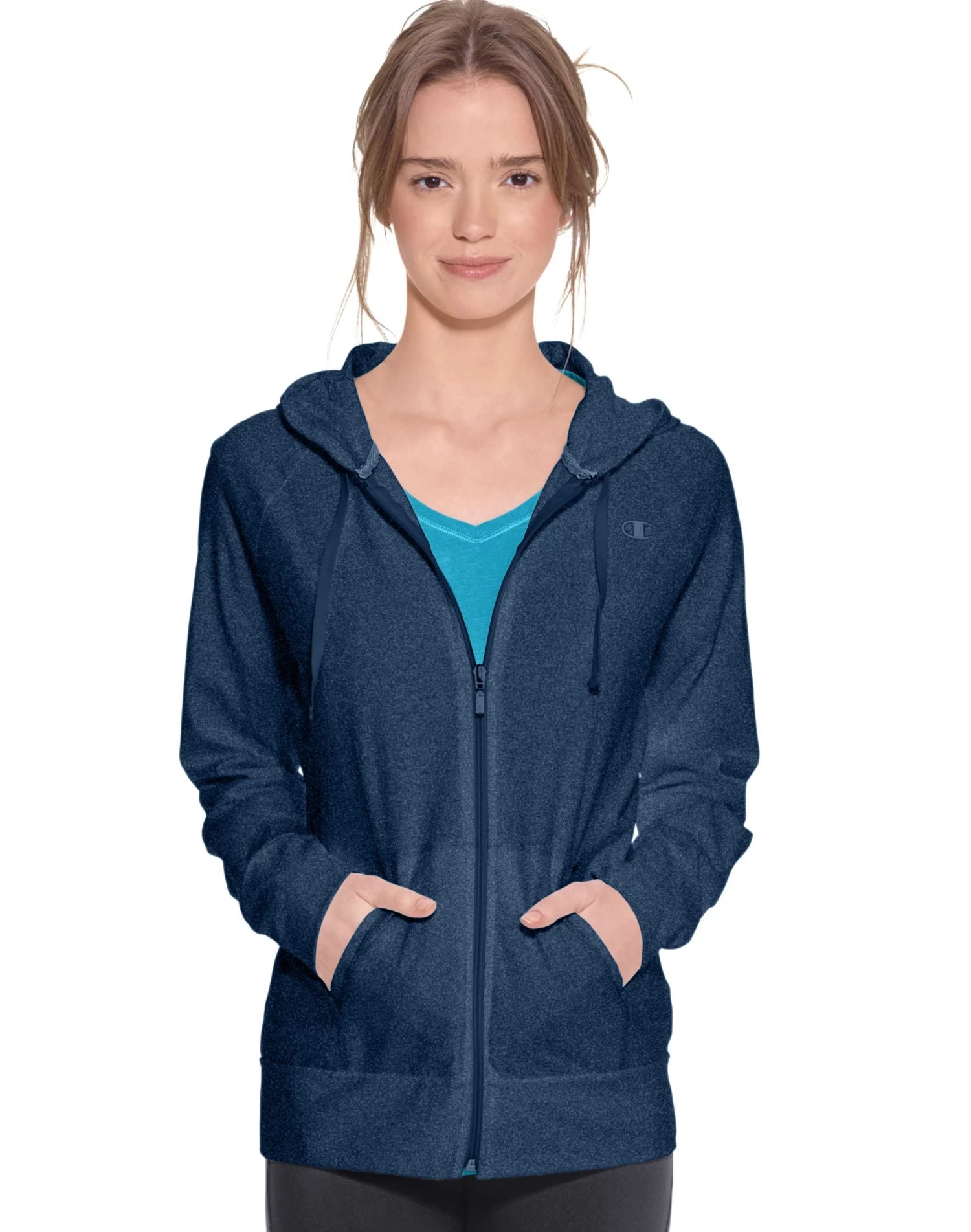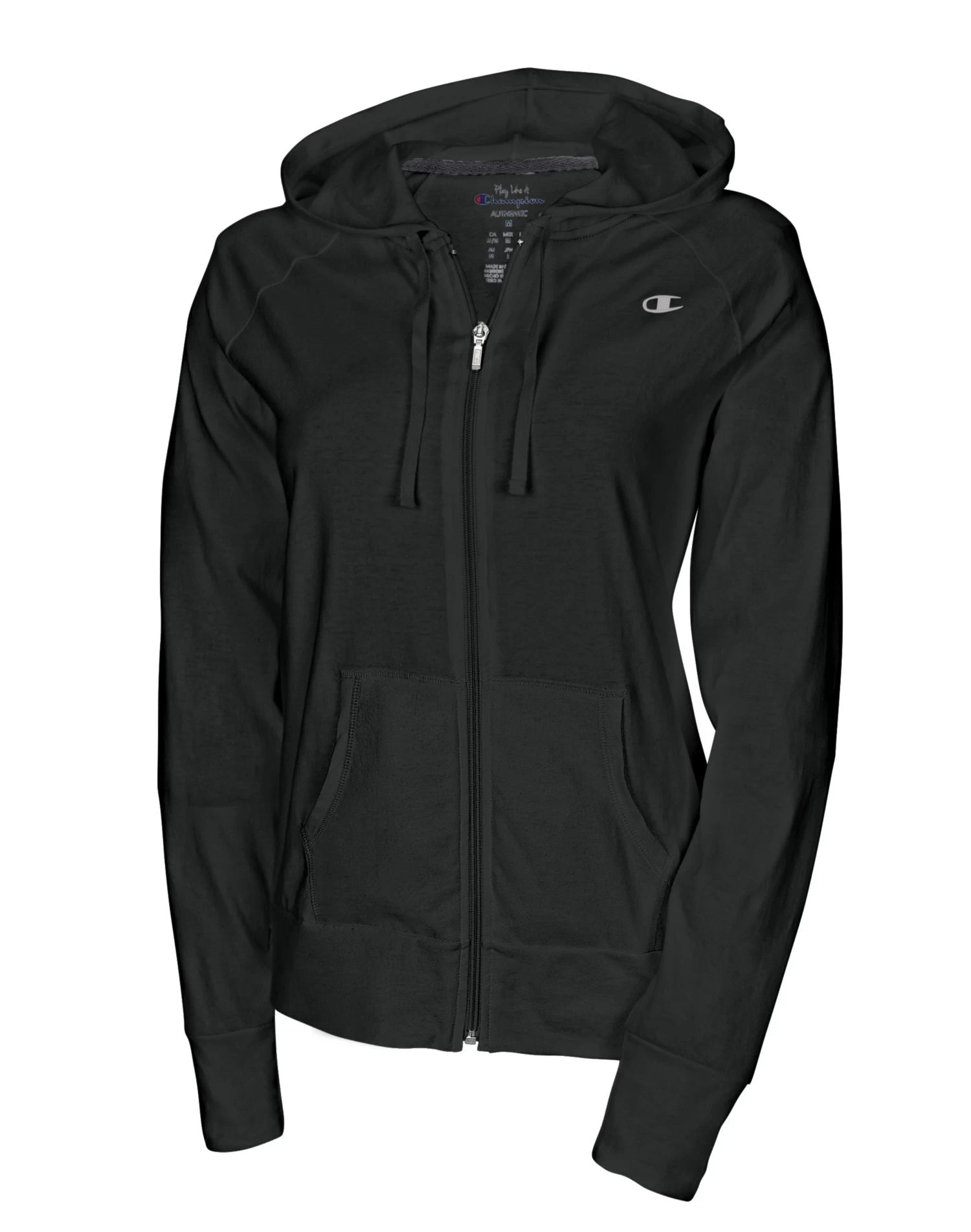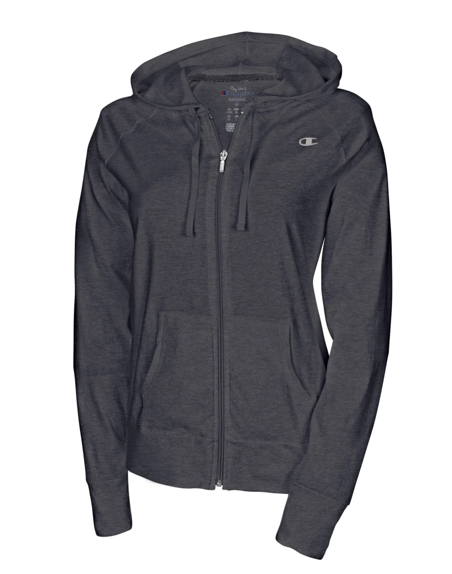 - Full zip front with drawstring hood.