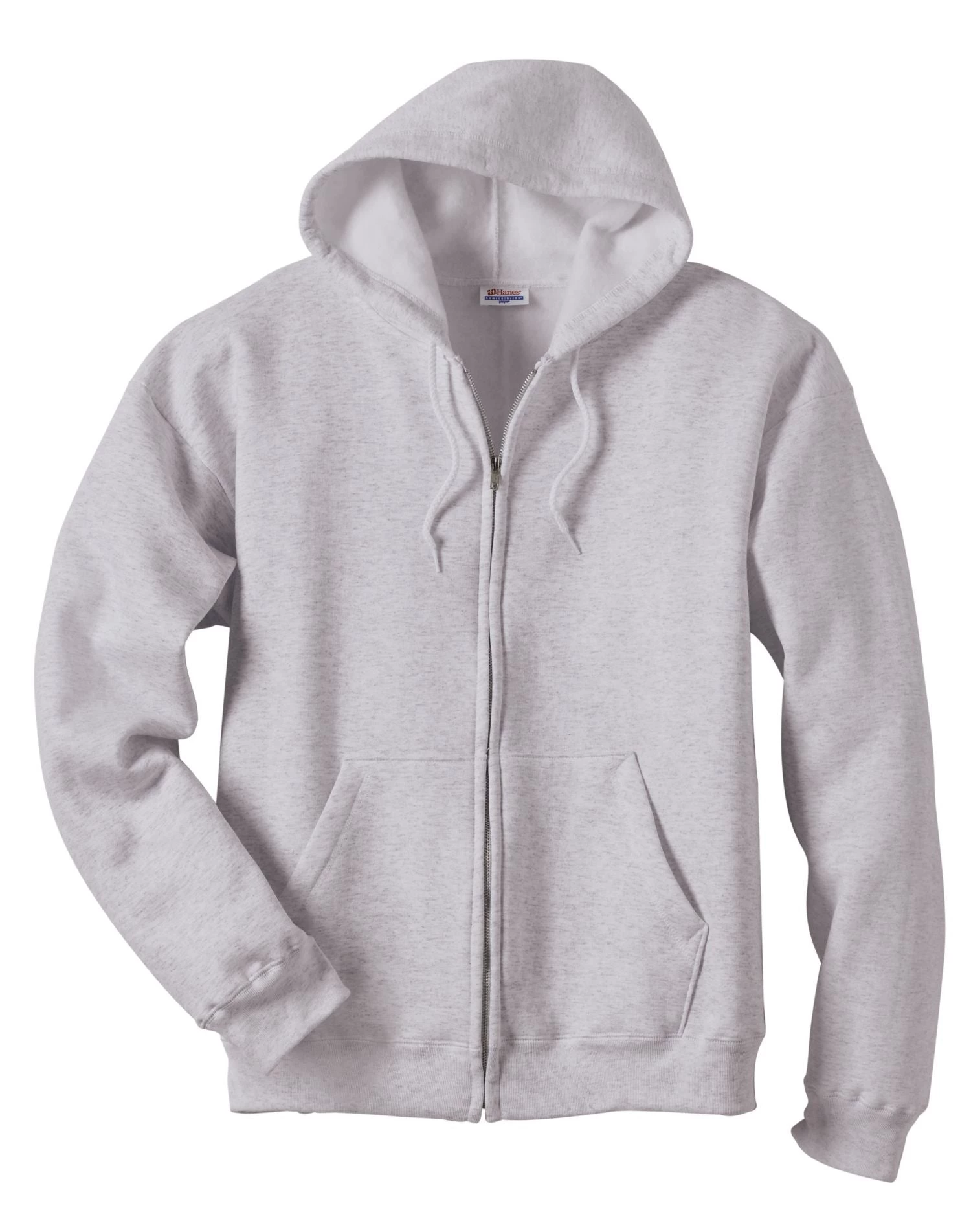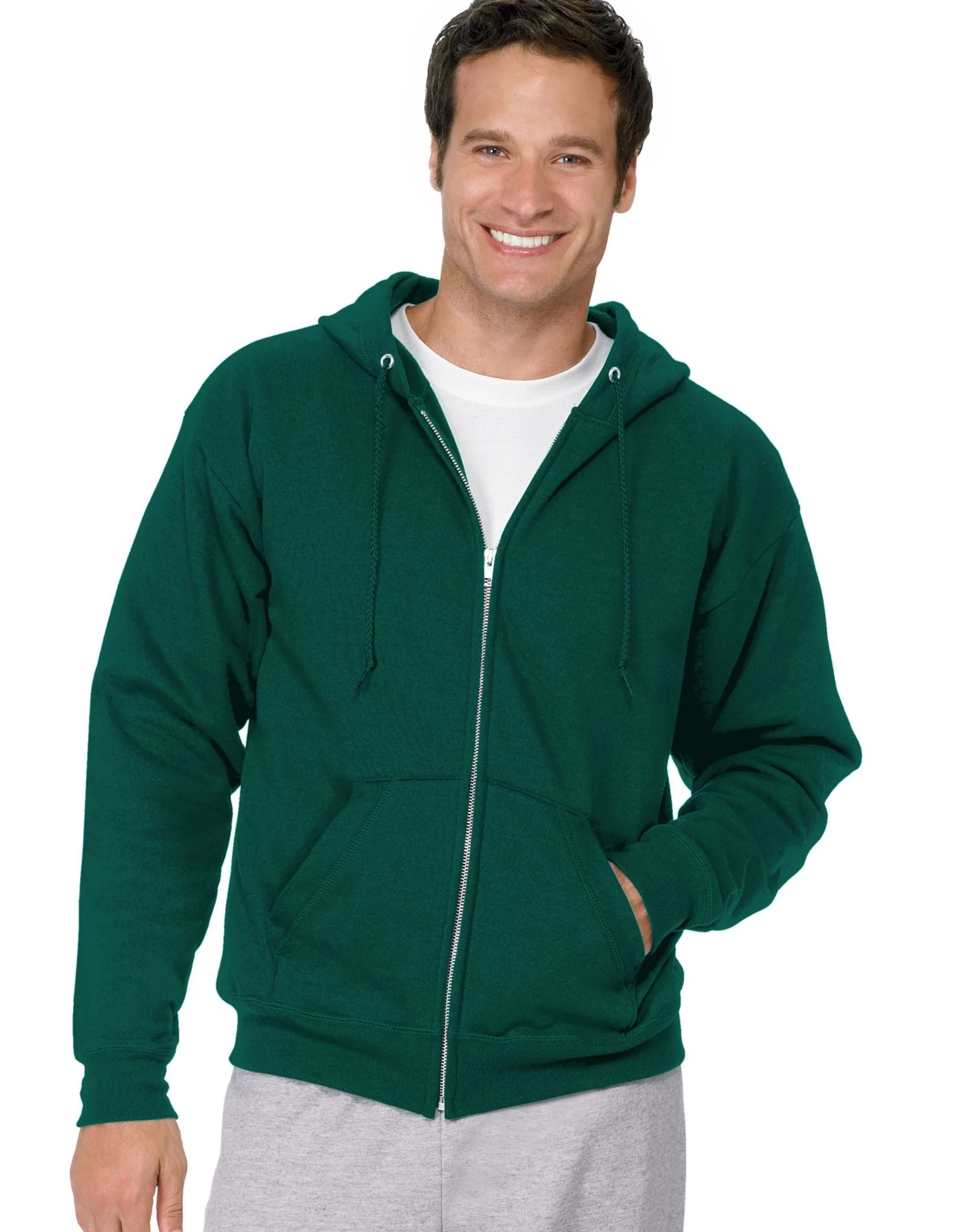 This Hanes P180 Unisex Comfortblend EcoSmart Full-Zip Hooded Sweatshirt, features: 7.8-ounce, 50/50 cotton/poly, Made with up to 5% recycled polyester from plastic bottles, PrintPro XP fleece with high-stitch density for superior embellishmentTag-free label Rib knit cuffs and waistbandSingle-ply hood with dyed-to-match drawcord, Triple-needle stitching along hood, cuffs, pockets and waistband, Front pouch pockets.