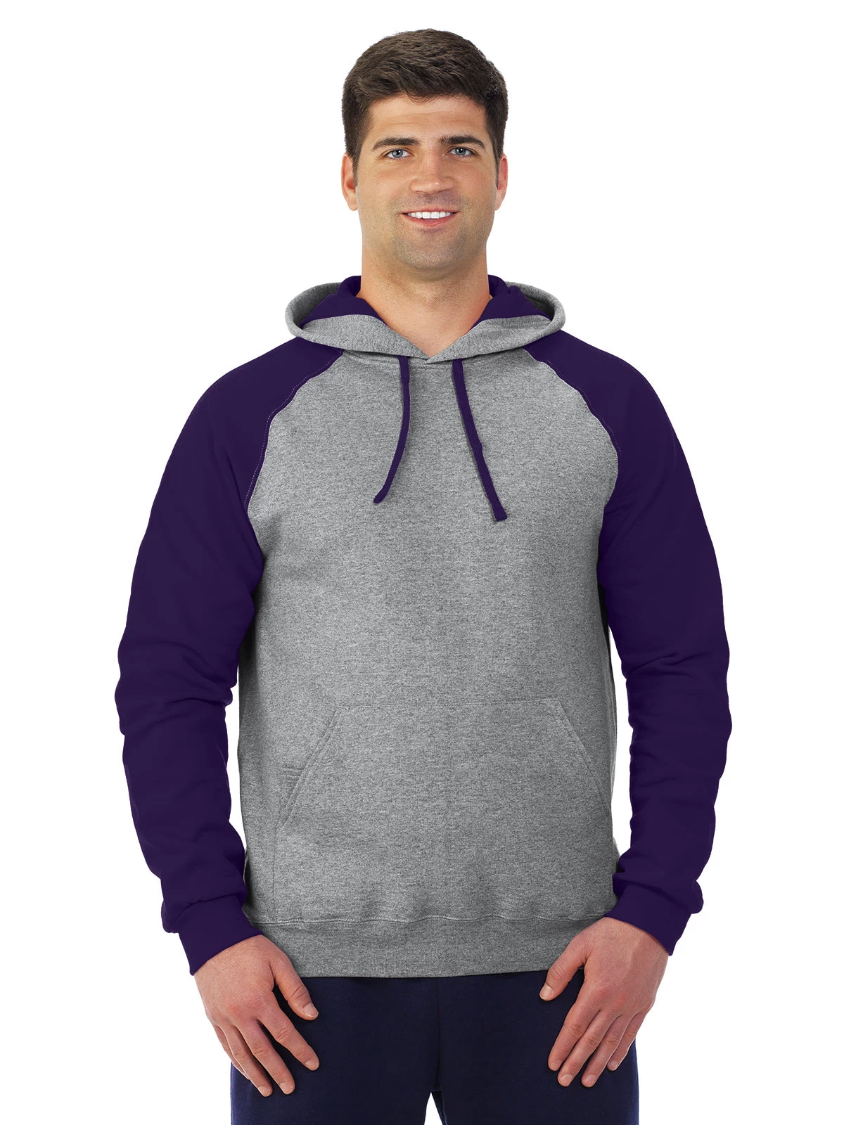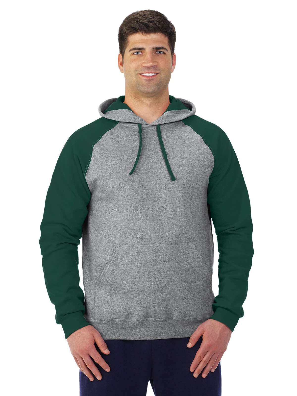 Jerzees Mens NuBlend Color-Block Raglan Pull Over Hooded Sweatshirt.