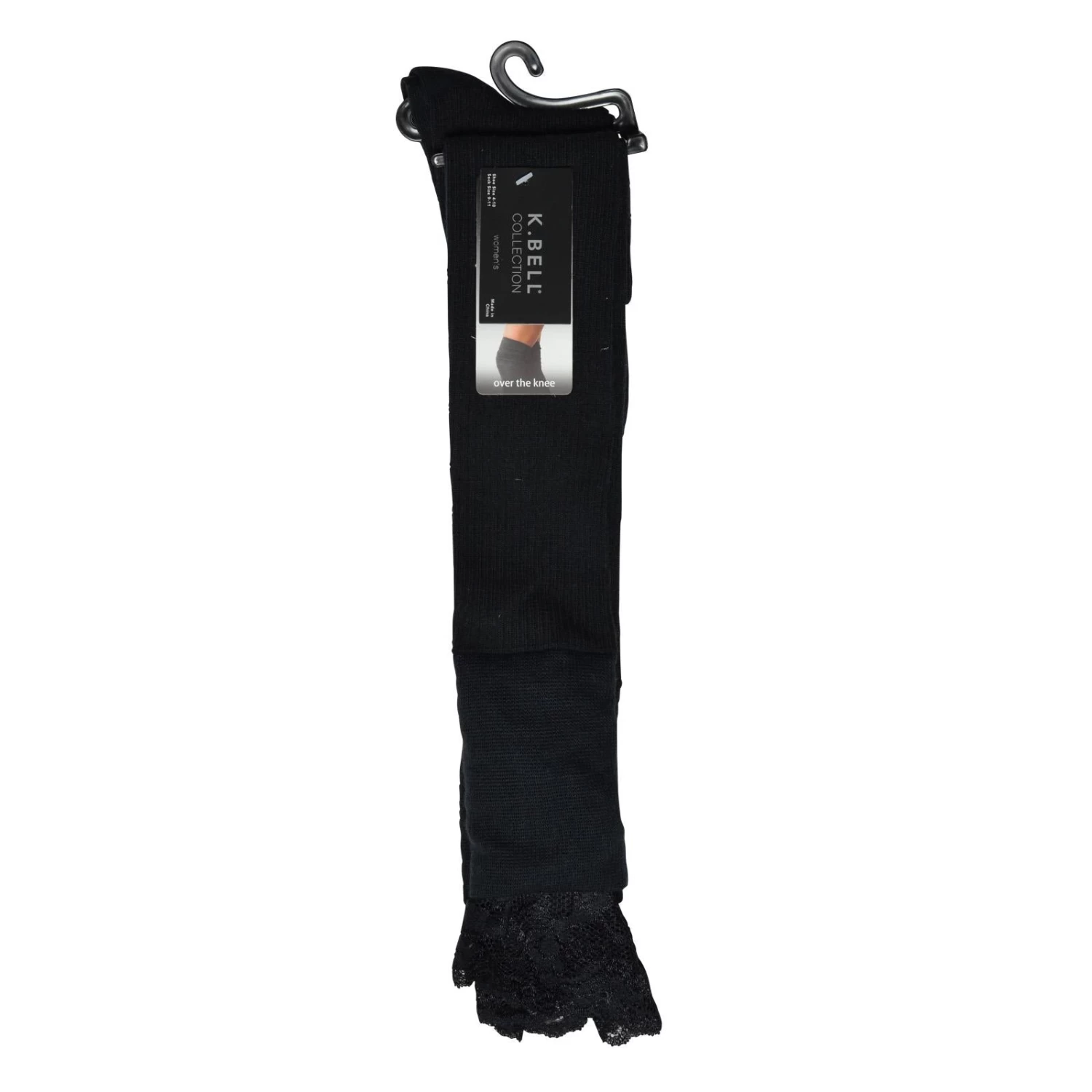 - This mocke ribbed over the knee sock has a beautiul lace detail on top.